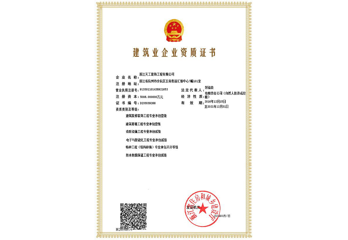 浙江天工裝飾工程有限公司成立于1994年,是一家專注于建筑行業(yè)近三十年,余杭區(qū)內(nèi)規(guī)模最大、最專業(yè)的現(xiàn)代化專業(yè)承包企業(yè),連續(xù)十二年榮獲“余杭區(qū)建筑業(yè)十強企業(yè)”稱號。公司現(xiàn)任余杭區(qū)建筑裝飾行業(yè)協(xié)會會長單位、杭州市建筑裝飾行業(yè)協(xié)會副會長單位、浙江省建筑裝飾行業(yè)協(xié)會副會長單位、中國建筑裝飾協(xié)會理事單位。公司具備建筑裝修裝飾工程專業(yè)承包壹級、建筑幕墻工程專業(yè)承包壹級、建筑裝飾工程設(shè)計專項甲級、建筑幕墻工程設(shè)計專項甲級、展覽陳列工程設(shè)計施工一體化貳級、電子與智能化工程專業(yè)承包貳級、消防設(shè)施工程專業(yè)承包貳級、防水防腐保溫工程專業(yè)承包貳級,集建筑工程施工總承包、建筑機電安裝、城市及道路照明、鋼結(jié)構(gòu)、結(jié)構(gòu)補強、安防施工等多項資質(zhì)。主要從事大型公共建筑、星級酒店的室內(nèi)精裝修、建筑幕墻及建筑智能化工程的設(shè)計與施工。 天工裝飾始終把建筑裝飾當作一項 “美的事業(yè)”,在施工中嚴把質(zhì)量關(guān),不斷規(guī)范和提升工程技術(shù)標準。近年來,公司承建的浙商開元名都國際酒店I標段裝飾工程、杭州藝尚雷迪森廣場酒店裝修工程、余杭區(qū)時代廣場5號樓(市民之家)室內(nèi)裝飾工程、永安之星室內(nèi)裝飾工程、青山湖科技城創(chuàng)業(yè)廣場裝修工程、杭州未來科技城醫(yī)院室內(nèi)裝飾工程、杭州師范大學附屬實驗學校裝修工程、杭州老板電器股份有限公司辦公樓裝飾工程、深川控股集團綜合樓幕墻工程、浙江省科技信息研究院幕墻工程、北航杭州創(chuàng)新研究院(余杭)內(nèi)裝及智能化提升改造項目(研究生院)工程、臨平新城人才服務(wù)中心設(shè)計釆購施工(EPC)工程總承包項目、浙江大學先進電氣裝備創(chuàng)新中心室內(nèi)外裝飾及改造項目設(shè)計采購施工(EPC)工程總承包項目等,先后獲得“中國建筑工程裝飾獎”、“全國建筑裝飾科技創(chuàng)新獎”、浙江省建設(shè)工程“錢江杯”優(yōu)質(zhì)工程獎、杭州市建設(shè)工程“西湖杯”優(yōu)質(zhì)工程獎、嘉興市建設(shè)工程“南湖杯”優(yōu)質(zhì)工程獎、“浙江省優(yōu)秀建筑裝飾工程獎”、“浙江省優(yōu)質(zhì)安裝質(zhì)量獎”等榮譽。 天工裝飾恪守“誠實守信、文明經(jīng)營”,近年來公司得到了客戶的信賴也獲得了業(yè)界的好評,先后被評為“國家級守合同重信用單位”、“全國建筑裝飾行業(yè)AAA級信用企業(yè)”、“全國百家科技創(chuàng)新型企業(yè)”、“浙江省AAA級守合同重信用單位”、“人民銀行信用等級AAA級企業(yè)”、“浙江省信用管理示范企業(yè)”、“浙江省誠信企業(yè)”、“浙江省建筑裝飾行業(yè)強優(yōu)企業(yè)”、“杭州市建筑業(yè)優(yōu)秀企業(yè)”、“余杭區(qū)建筑業(yè)十強企業(yè)”、 “余杭區(qū)人民政府質(zhì)量獎”等榮譽。
